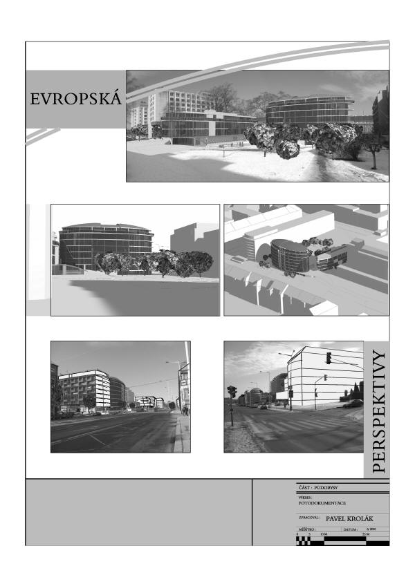 Jedná se o solitérní stavbu přímo u hotelu Diplomat na výstupu ze stanice metra A Dejvická, navazující na rušnou pěší i automobilovou trasu centra Dejvic - Evropskou třídu. Součástí návrhu se stala pasáž vedoucí přímo z metra do tohoto objektu a dále směrem do parku za hotelem, s návazností na čtvrť Ořechovka. Při Evropské vznikl zajímavý šestipodlažní objekt administrativy s možností umístění úřadu městské části a podél hotelu pak třípodlažní objekt s doplňkovými službami, pod kterými se nachází zmiňovaná pasáž a dvě patra podzemních garáží. Pasáž je protažena do obou nadzemních objektů přes několik pater - prosklenými výtahy, vodními plochami a stromy.